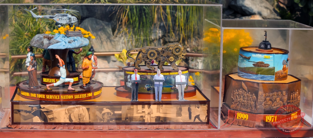 Veterans Tableau Sangram se Rashtra Nirman theme front Amar Jawan Jyoti 3D T-55 Vijayant tanks Hunter MiG-21 Mirage Jaguar INS Mysore Rajput 1965 1971 Kargil representations rear veterans flood relief medical education Make India contributions demonstrating battlefields nation-builders seamless transition powerfully resonating national service continuum vibrantly.Flypast 29 aircraft 16 fighters 4 transports 9 helicopters six bases eight formations Dhwaj Mi-17V5 National Flag Services flags opens Rafale Su-30 MKI MiG-29 Jaguar C-130 C-295 P-8I ALH variants Apache LCH Operation Sindoor embodies Achook Abhedya Sateek precision air power jointmanship showcasing global aerospace leadership decisively positioning IAF modern force authentically.