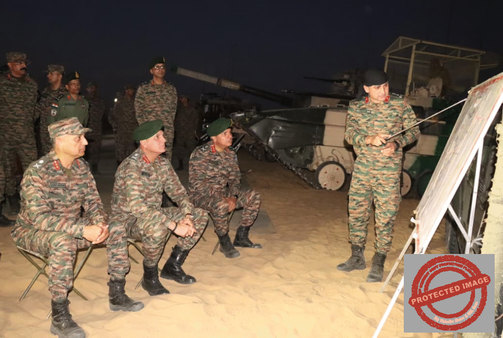 Pune | November 11, 2025: Lt Gen Dhiraj Seth, PVSM, AVSM, General Officer Commanding-in-Chief, Southern Command, reviewed the operational preparedness of the Konark Corps during Exercise Akhand Prahar, held as a key component of the Tri-Services Exercise Trishul. The large-scale exercise aimed to validate the Indian Army’s ability to conduct integrated, multi-domain operations in coordination with the Indian Air Force.