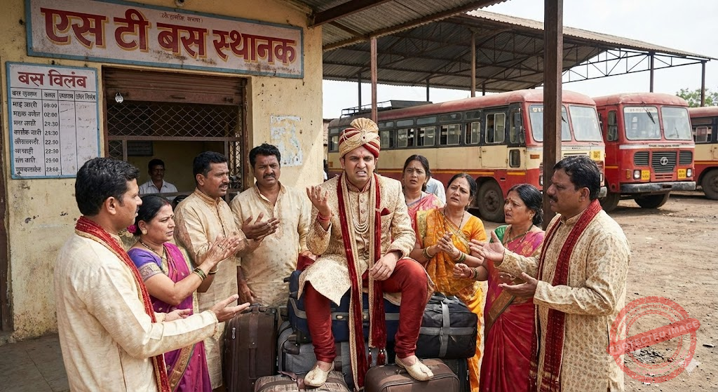 A wedding in Maharashtra faced major disruption when an ST bus booked for the event went to the wrong village and later broke down en route, causing hours of delay.